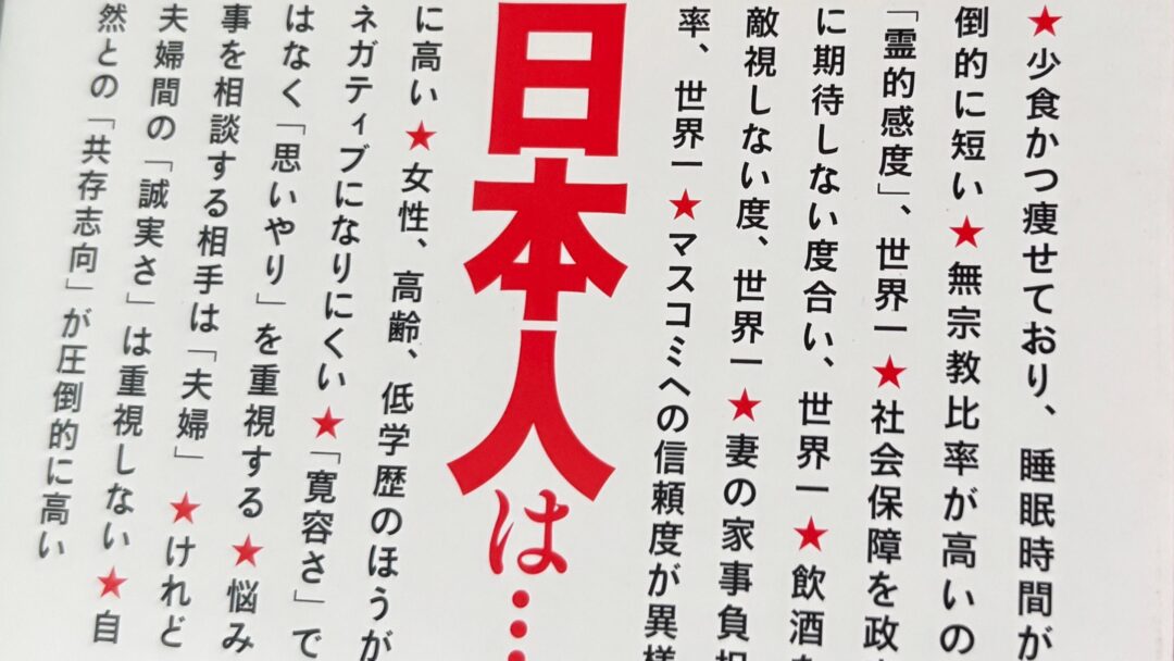確かにそうだなと思うことが並んでいますが、その度合がダントツで世界一だったりします。日本で生まれ育って、普通に暮らしているつもりですが、世界から見ると色んな面で日本人は特殊な民族のようです。